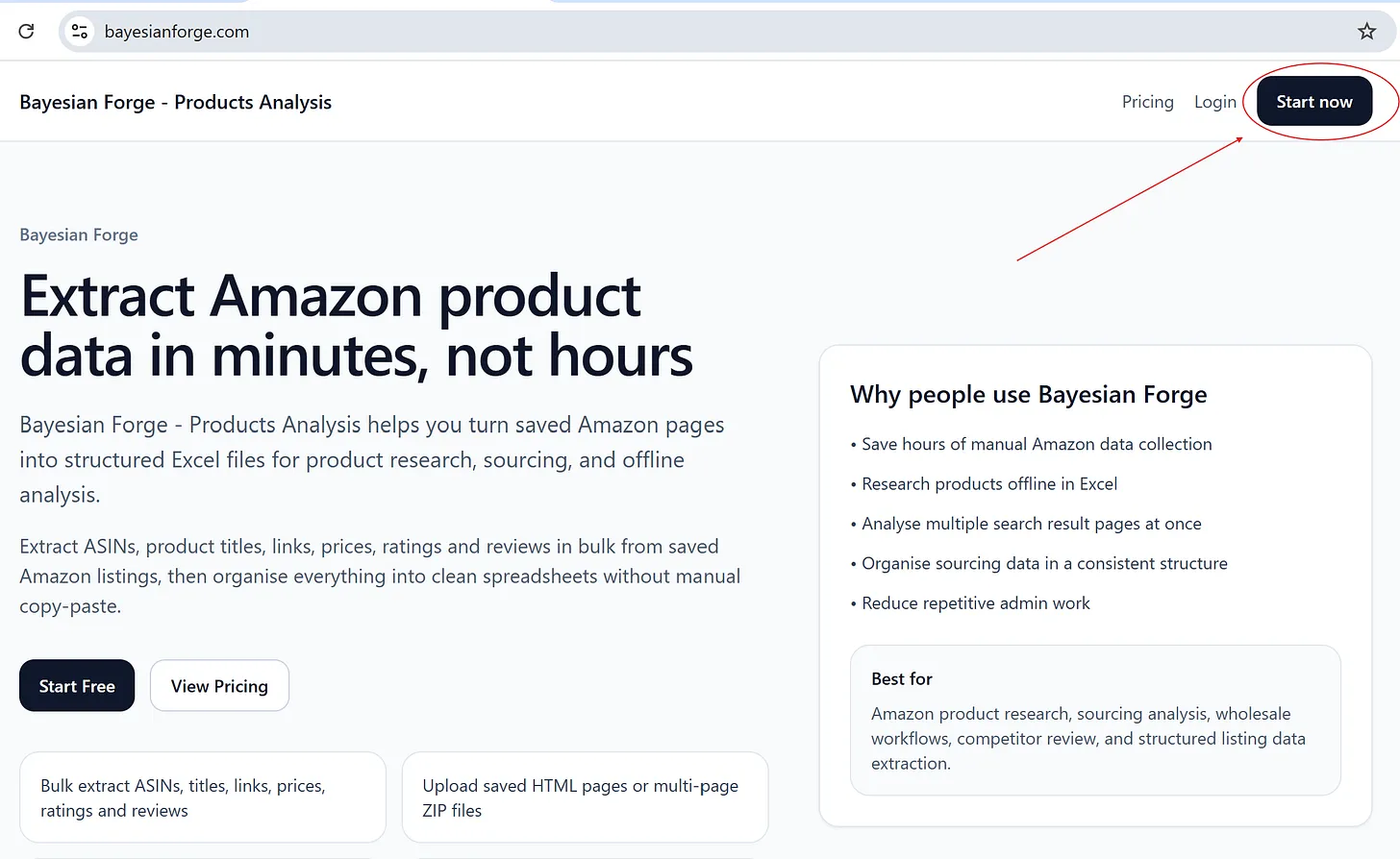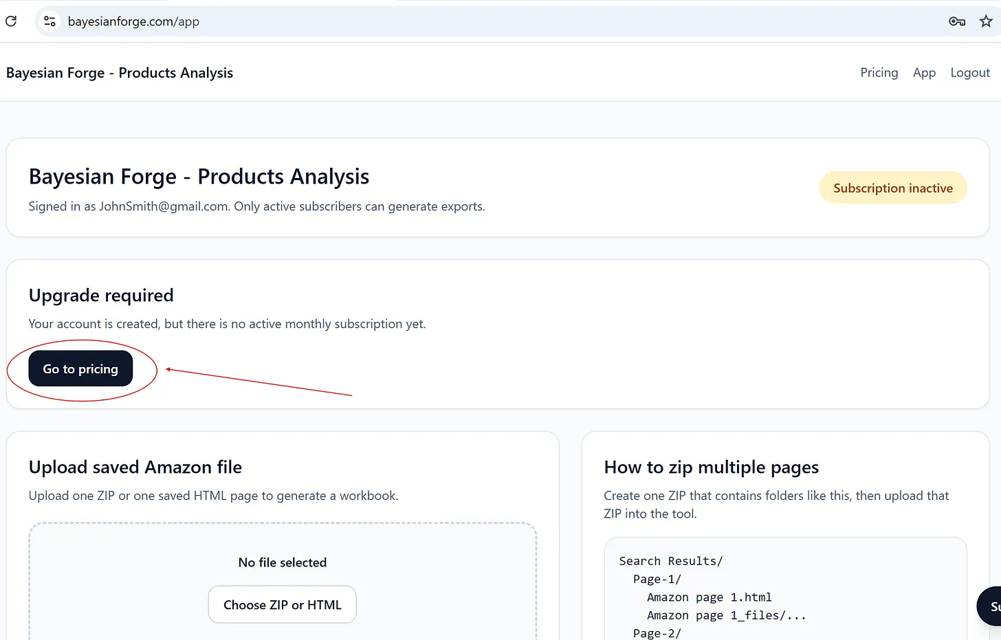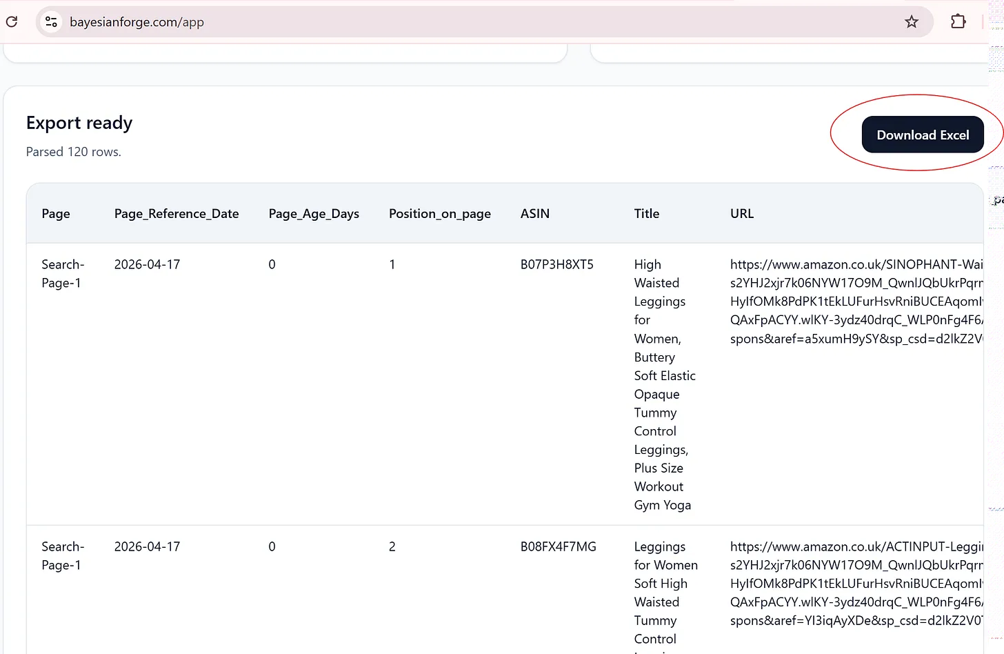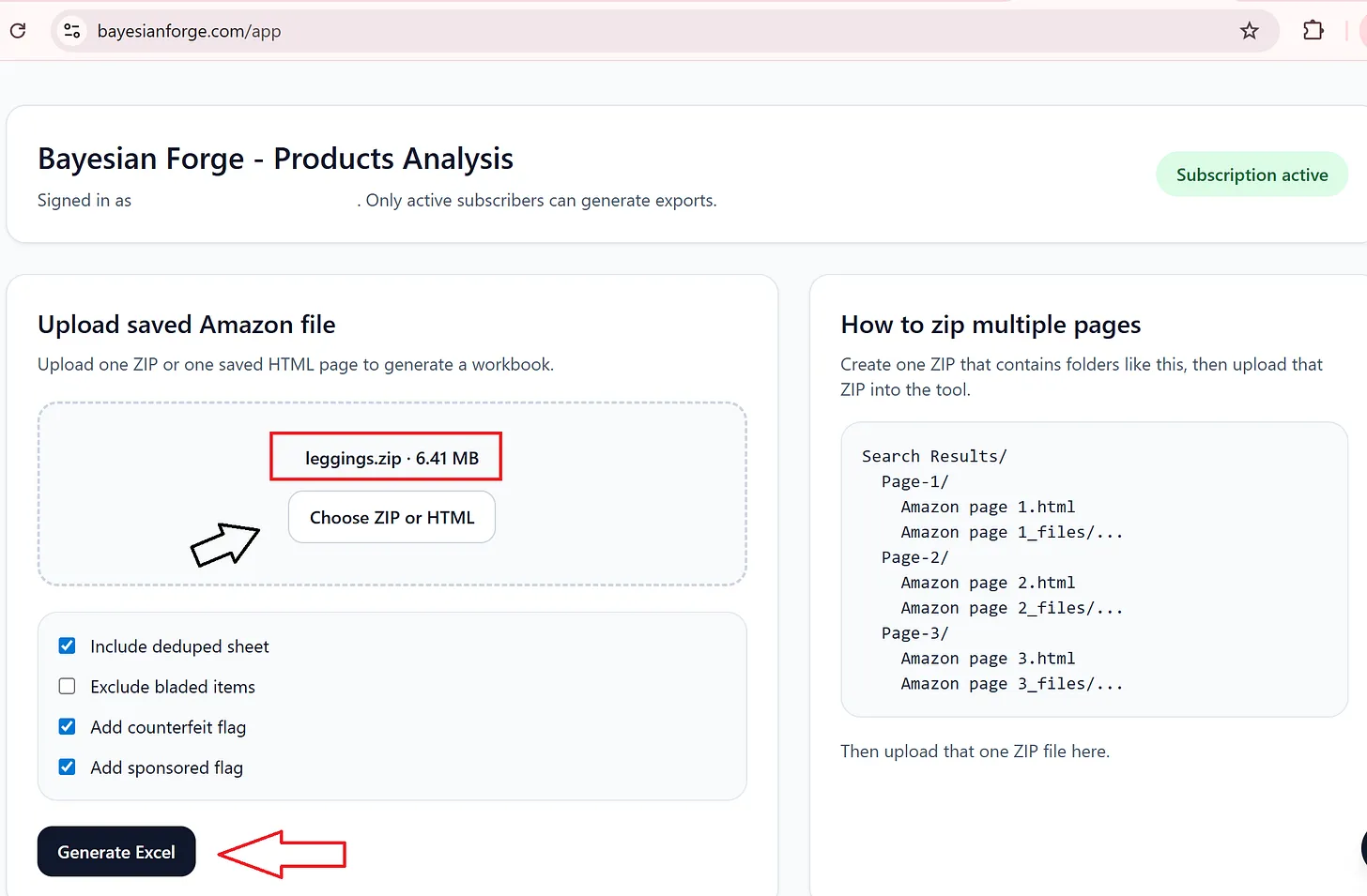 This guide walks you through the complete workflow: create an account, save Amazon search-result pages correctly, zip them, upload them into Bayesian Forge, and download a clean research-ready Excel file.