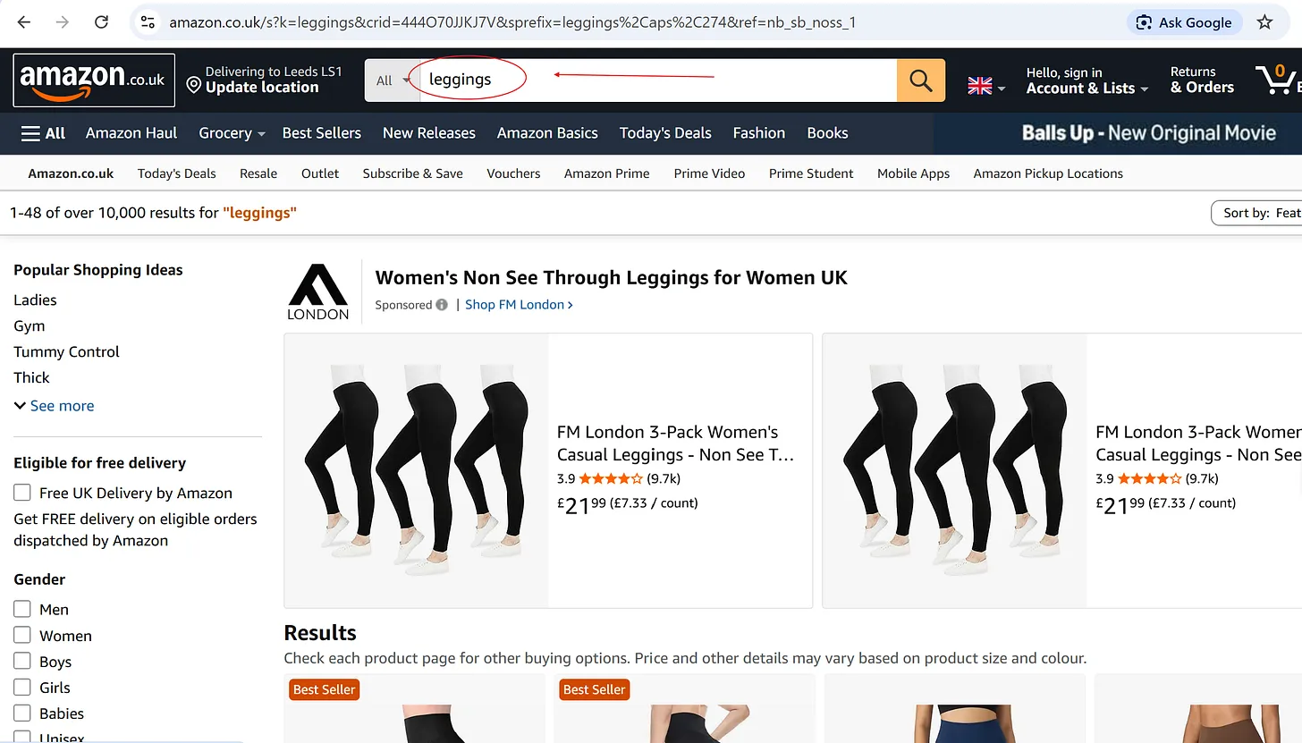 Open Amazon and search for the product type you want to research. The tool is designed to work from saved Amazon search-result pages.